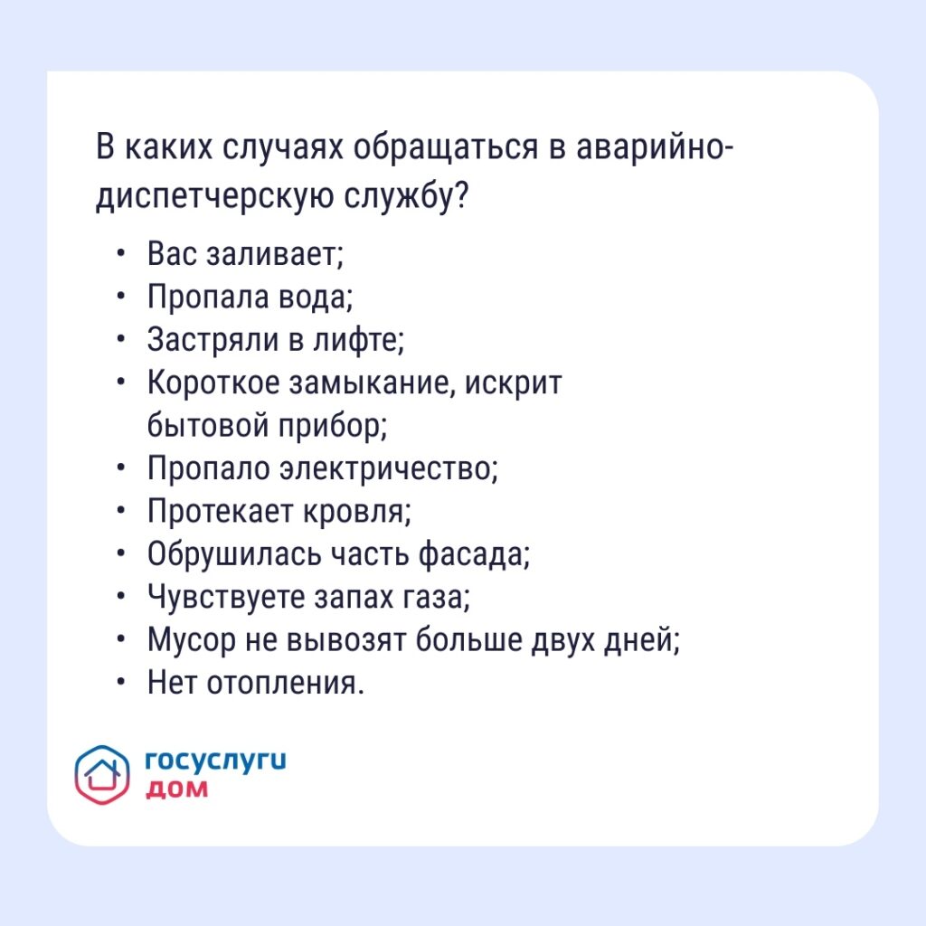 Для оперативной связи с аварийными службами в случае порывов труб, отключения электроэнергии, проблем с канализацией и других нештатных ситуаций, вы можете использовать специальный функционал в мобильном приложении «Госуслуги.Дом».